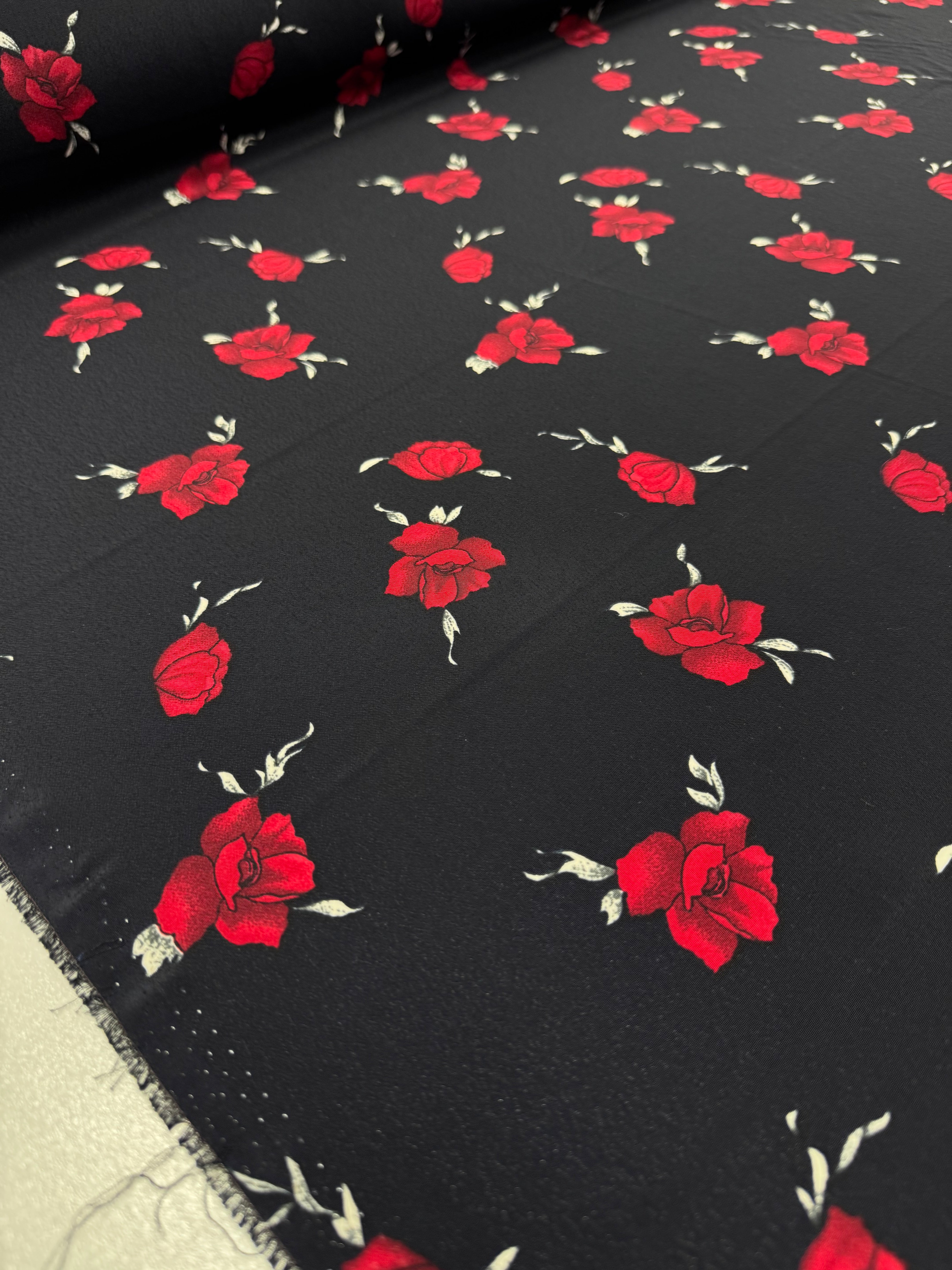 Printed Crepe - Red Rose - 115cm