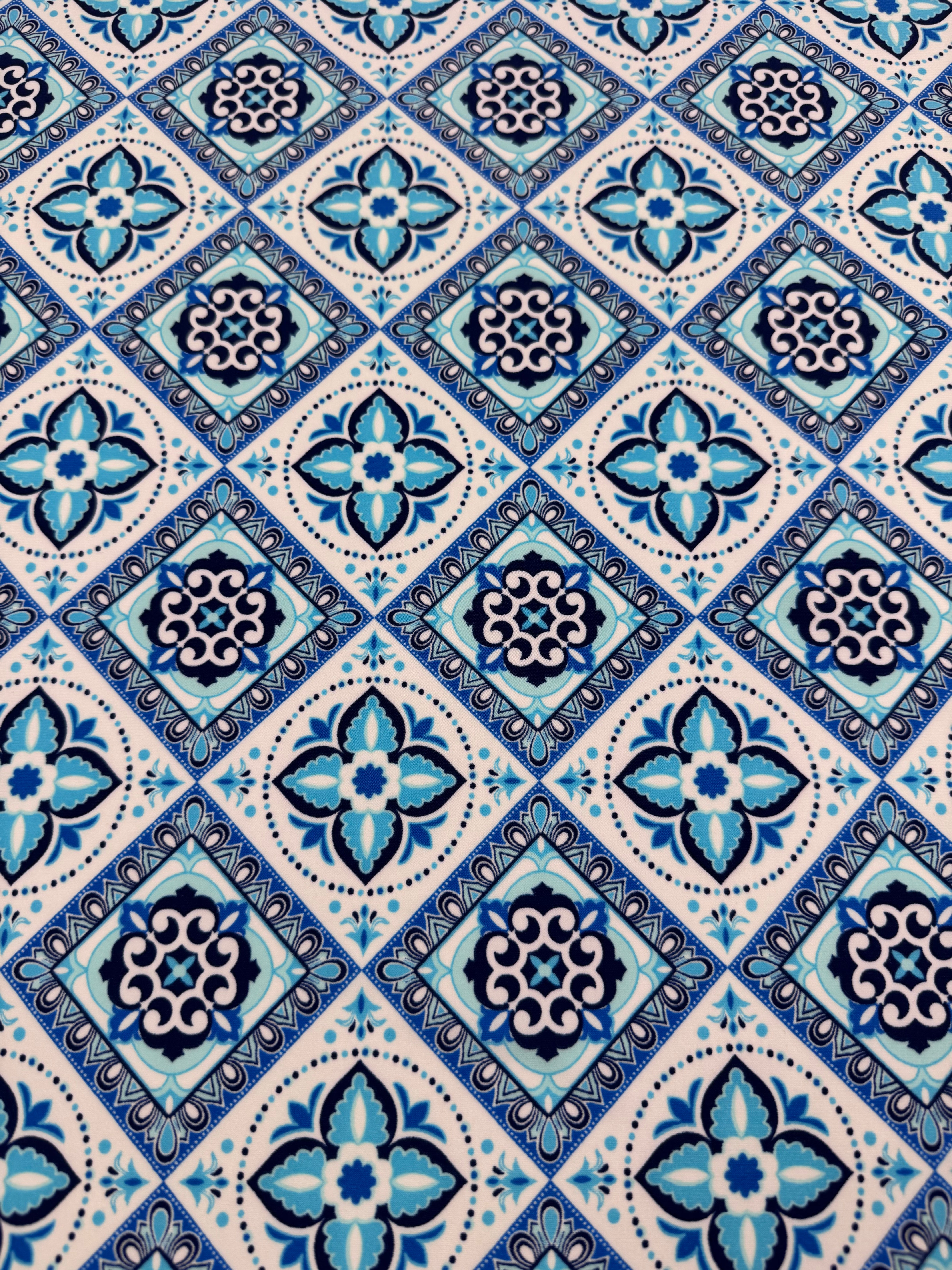 Printed Lycra - Azure Mosaic - 150cm