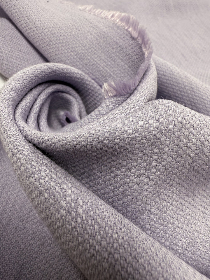 A soft lilac toned pure linen crepe fabric with a subtle matte texture.