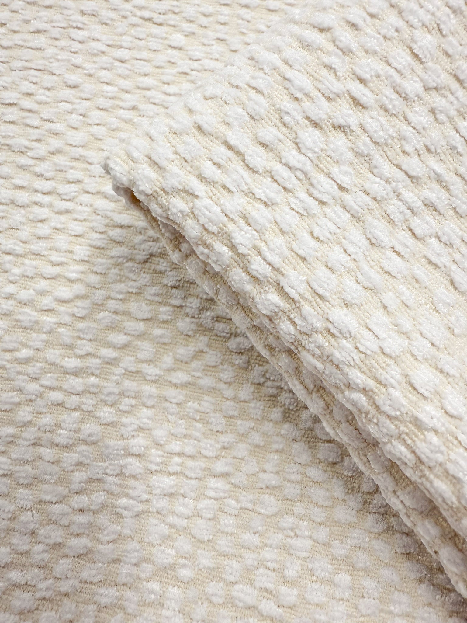 Snow Chenille Upholstery - a soft textured chenille weave with a subtle sheen - Pantone 11-0602 Snow White
