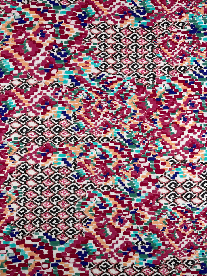 Mercerised Viscose - Crimson Mosaic - 140cm