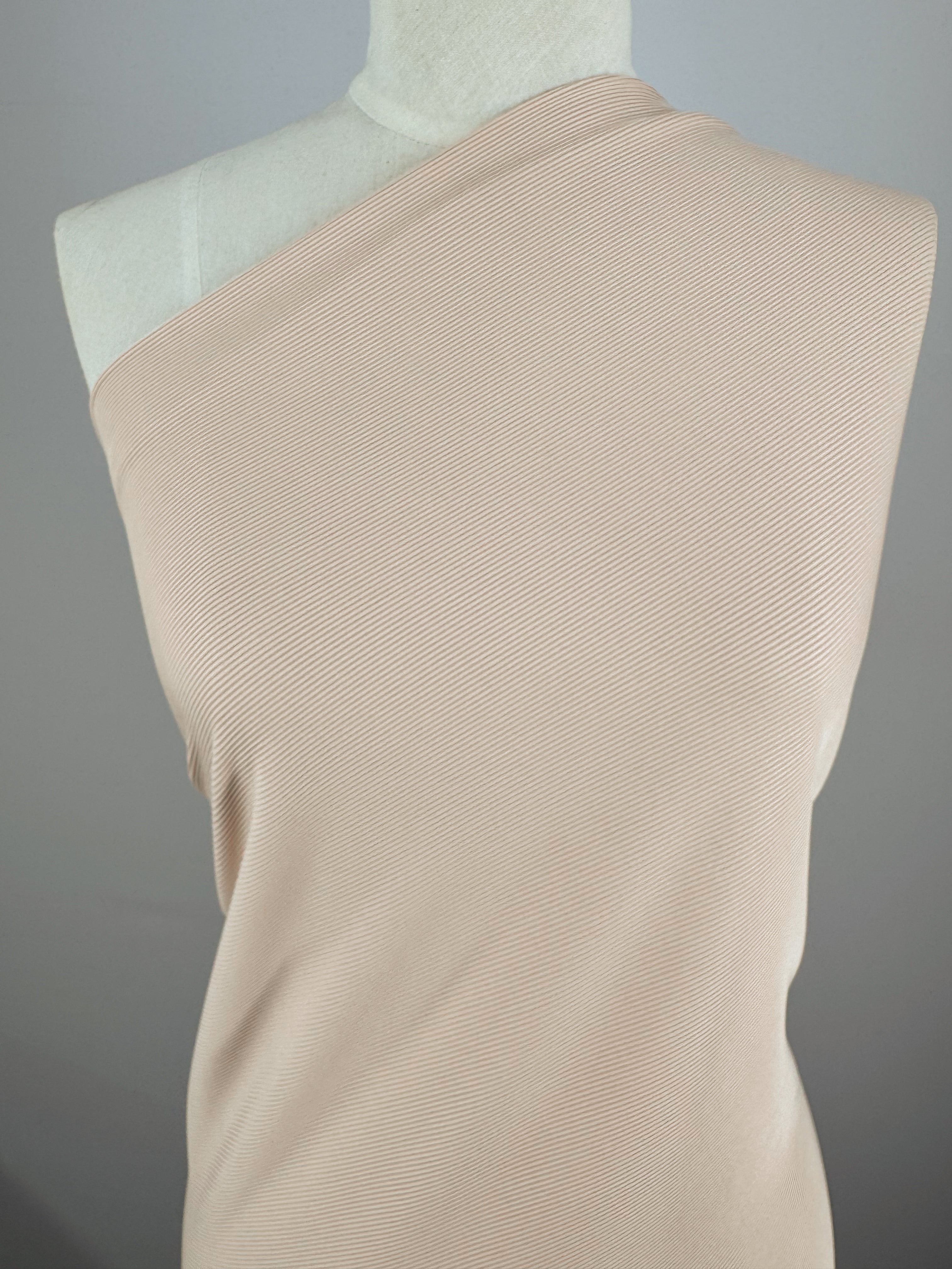Satin Back Crepe Gentle Machine Wash in cold water. Wash seperately. Do not soak, bleach or wring dry. Dry away from direct sunlight or heat. Do not tumble dry. Cool iron only. Dry-cleanable. |