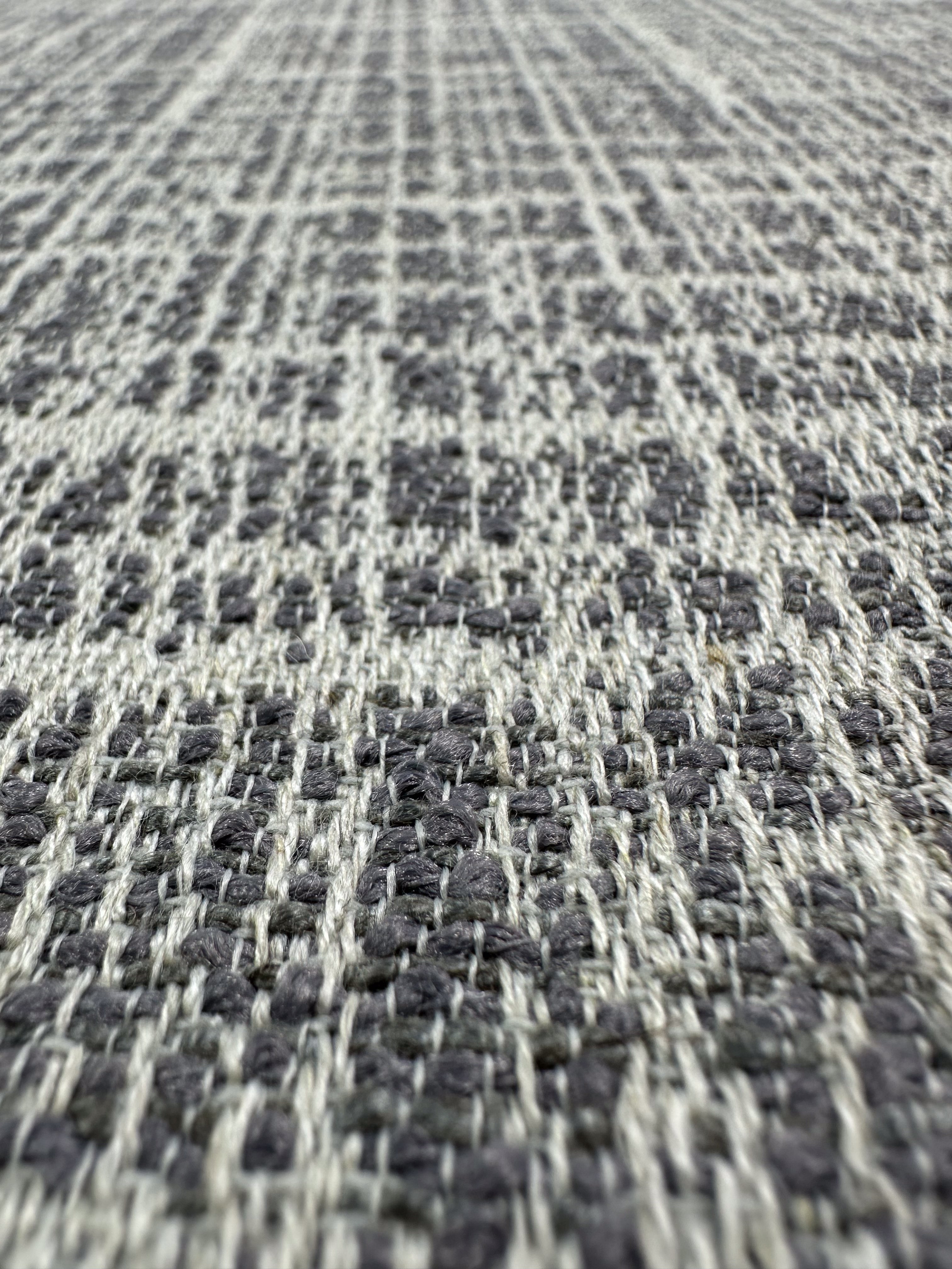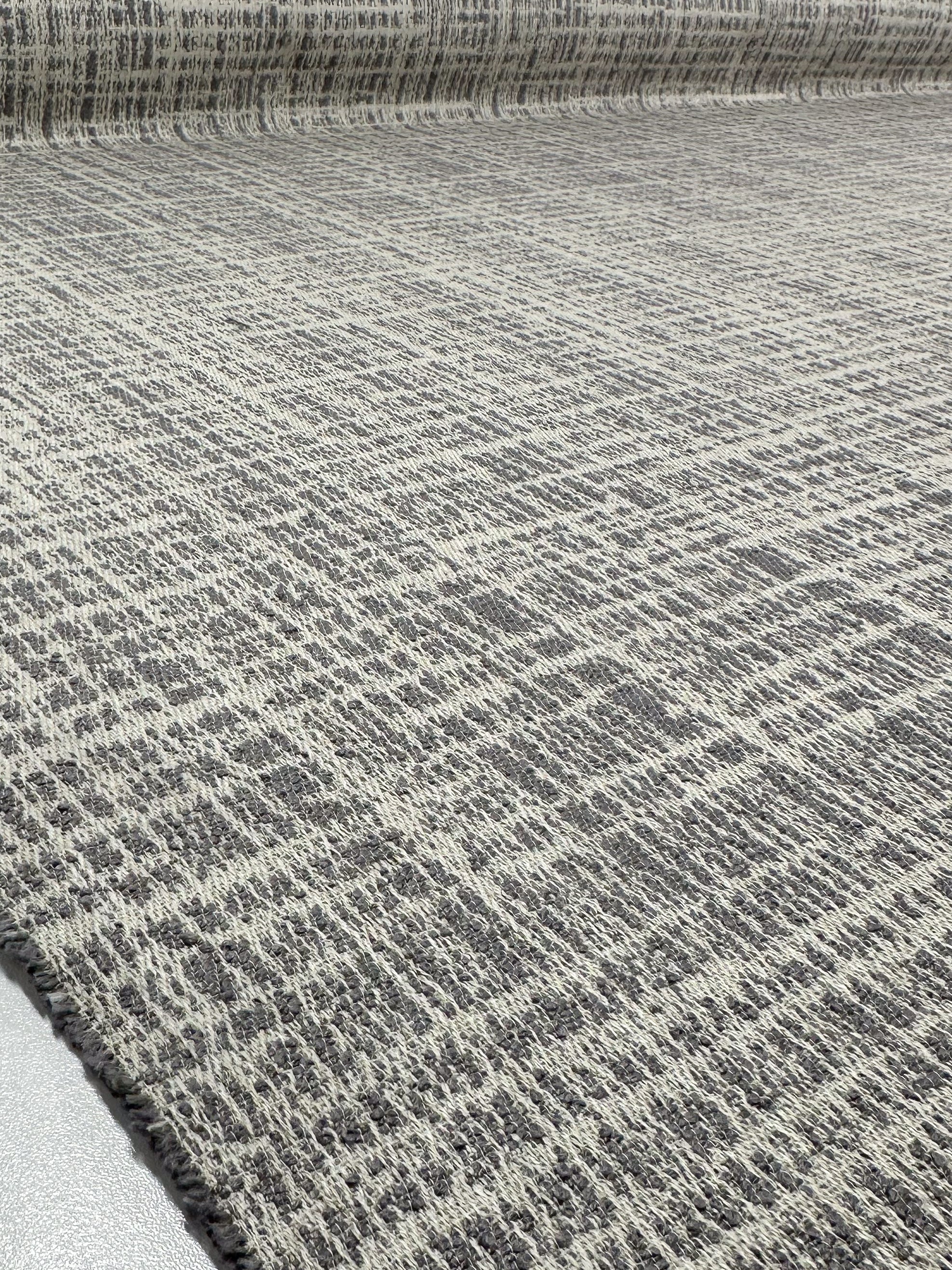 Close-up of Super Cheap Fabrics' Textured Weave Upholstery - Dexter 33 Dove (147cm), showcasing its gray and white checkered pattern and premium woven texture.